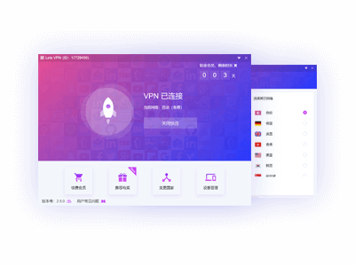 LestVPN,快连加速器内置多个国家的线路选择,每个国家又部署了不同的服务器,基于全球的服务器网络,连接速度及稳定有充分保障,无限带宽,无任何网络节流。